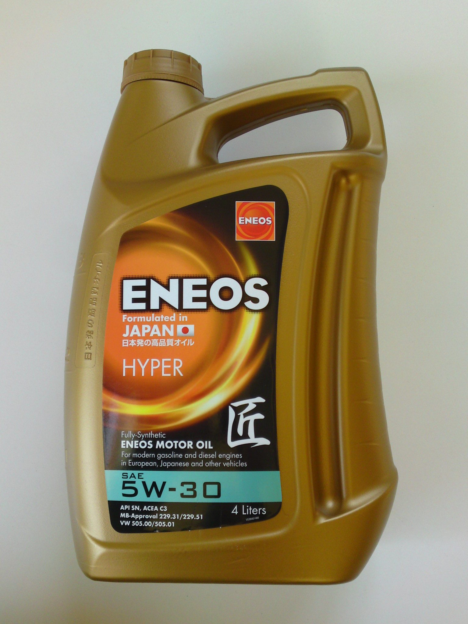 Az ENEOS Premium Hyper 5W-30 egy ultra modern teljesen szintetikus, üzemanyag takarékos motorolaj modern benzines LPG és dízel motorok katalizátorral illetve turbóval vagy anélkül szerelt változataihoz. Használata garantálja a gyors, stabil olajfilm kialakulását már alacsony hőmérsékleten is, ezáltal minimalizálva a motorkopást. Megfelel a modern direkt befecskendezős dízel motorokhoz akár Common Rail, vagy PD TDI befecskendező rendszerrel vannak ellátva. Részecskeszűrővel ellátott motorokba is alkalmazható. Olaj típus: Teljesen szintetikus