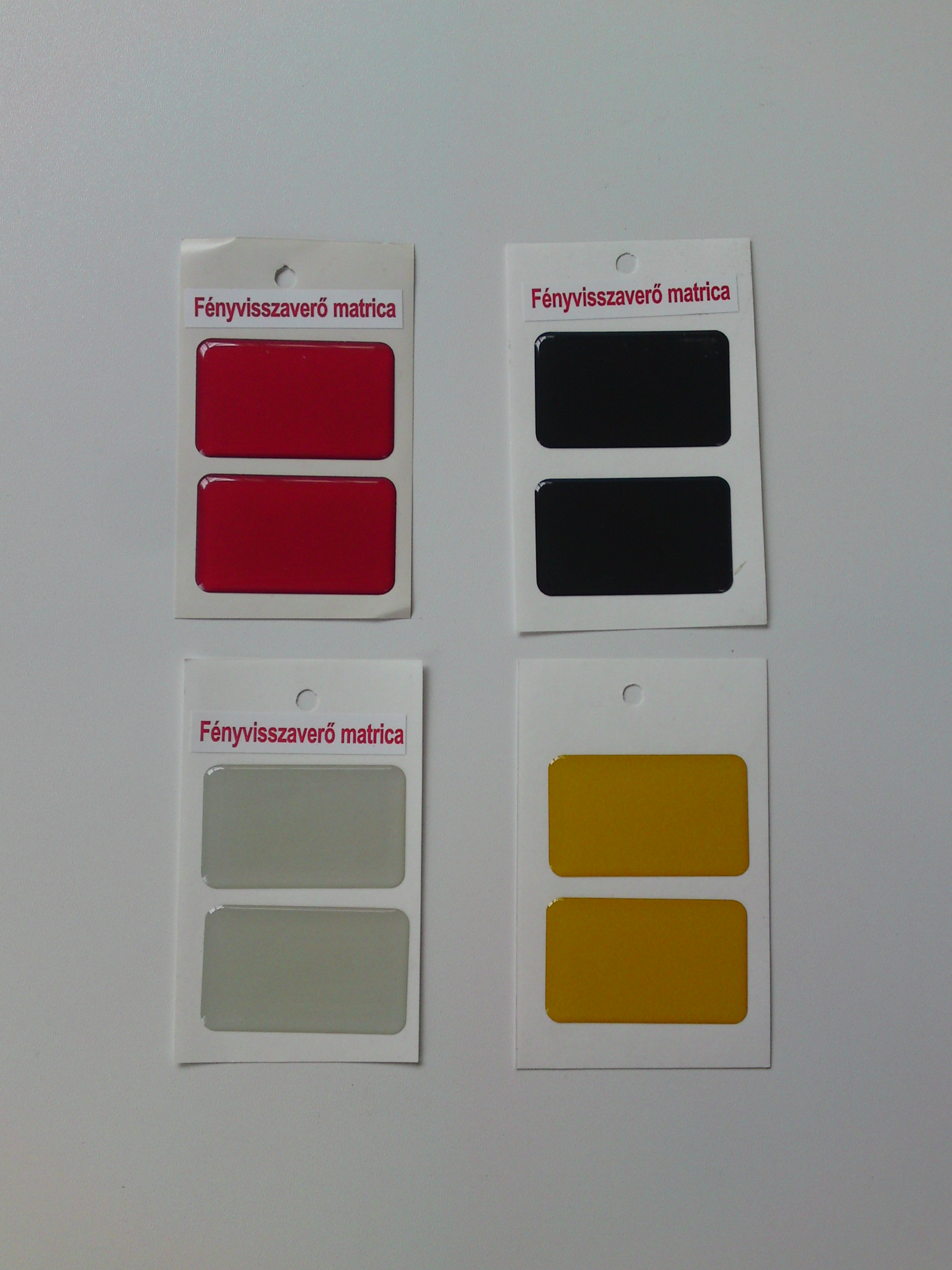 Több színben (fekete, fehér, kék, piros, sárga).