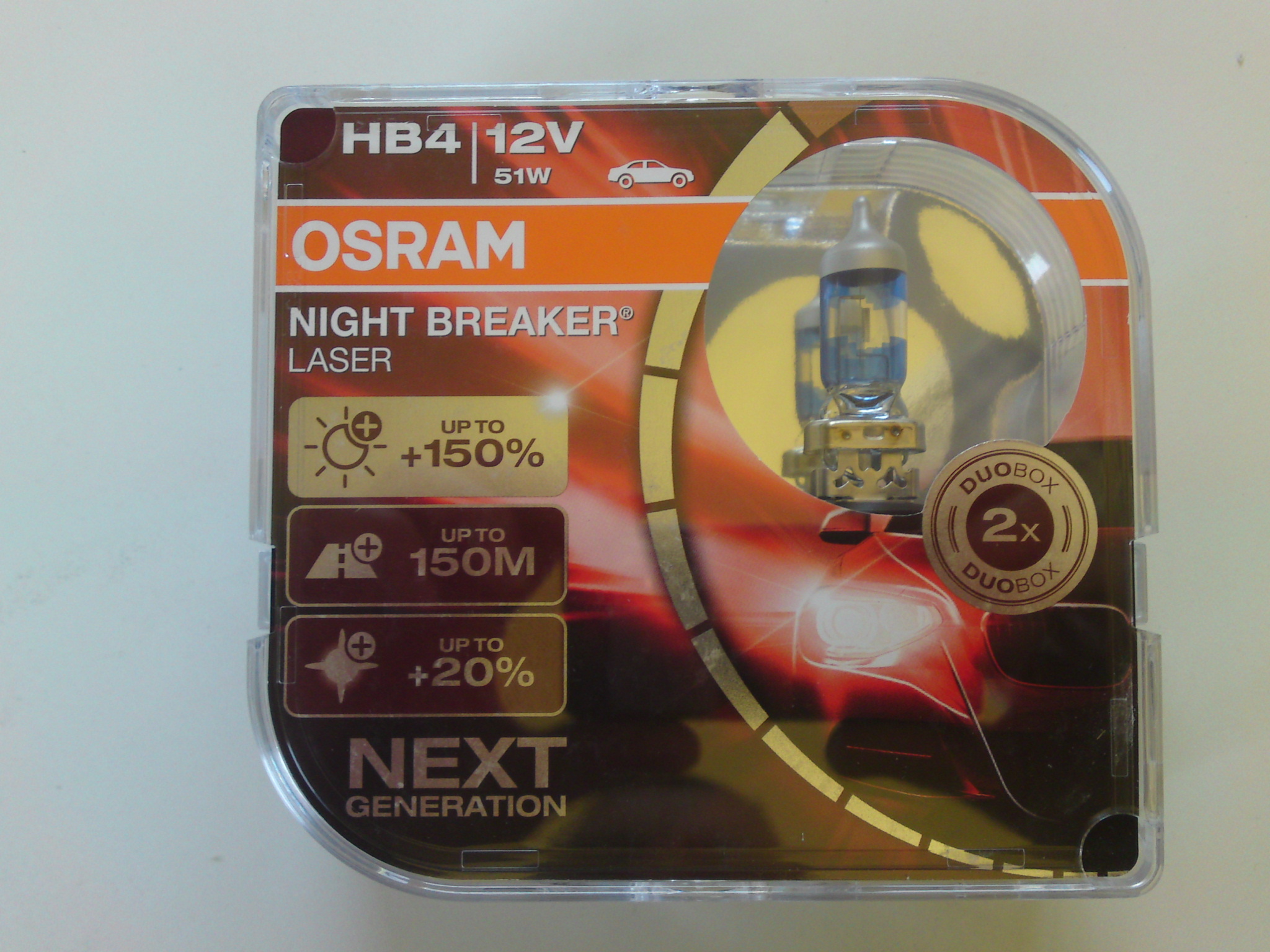 A Night Breaker Laser 150% Next Generation termékek a legerősebb világítási jellemzőkkel rendelkeznek. Az innovatív Laser technikának köszönhetően pontosabb világítási  képet kapunk  az előttünk megvilágított útszakaszon. A gyártói adatoknak megfelelően az új Night Breaker Laser +150% Next Generation izzók, 150%-kal fényesebbek a standard halogén izzókhoz képest. A kiemelkedő világítás értékek nagy részben a megújult gyártástechnológiai megoldásoknak köszönhetőek. Az emelt fényerősség mellett a színhőmérséklet is javult a standard halogénekhez képest, mégpedig 20%-kal fehérebb fényt kapunk, ha az új izzókkal világítunk. Mondhatjuk, hogy jól, hangzik, és ami fontosabb jól is fog kinézni. A lámpák burája speciális, pontos mintát követve került színezésre, a lehető legoptimálisabb fényerősség, és színhőmérséklet eléréséhez. Noha a világűrből még nem lesz látható az új Laser Gen2 család, de az aszfalton a maximumot nyújtja majd a prémium izzók kedvelőinek. A termékcsalád összes tagja ECE engedéllyel rendelkezik, közúti forgalomban használható. A régóta tartó sikeres Osram Night Breaker sorozat legújabb Laser Gen2 150%-os H7 izzója Tc szerinti 250 órás élettartamával vélhetően sikeresebb lesz bármelyik elődjénél. Ha a gyártó által megadott adatokat nézzük, a Night Breaker Laser 150% Next Generation izzókkal szerelt autók fényszórói akár 150 méterrel is távolabb világítanak a standard izzókkal szereltekhez képest, növelve a távolabbi tereptárgyak észlelését. Ha megfordítjuk a képletet, akkor minket is jóval korábban észrevesznek a szembe jövő autósok, ami számunkra szintén előnyt és biztonságot jelent. A fejeléstől függően 3500-4000K színhőmérsékletű Night Breaker Laser 150% Gen2 típusok elég fehérek lesznek ahhoz, hogy kontrasztosabb fényt adjanak, mint standard társaik és jobban kitűnjenek a közlekedésben növelve a biztonságot. Azok, akik az Osram Night Breaker Laser 150% Gen2 családot választják, nagyobb biztonságban érezhetik magukat az éjszakai közlekedés során.