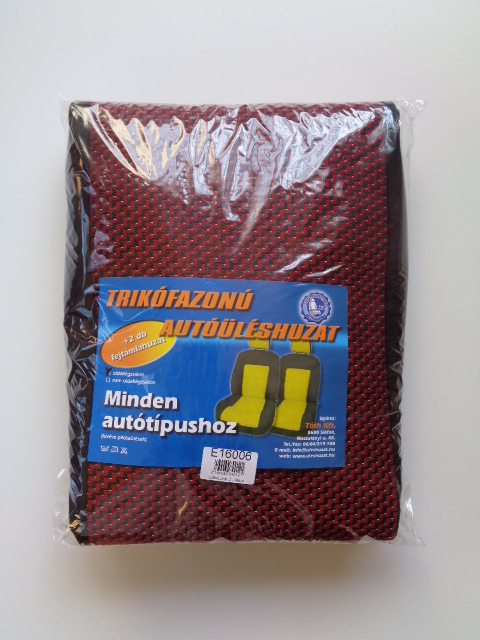 Üléshuzat 2 ülésre két fejtámlával. Az üléshuzat háttámlájának felső része trikó fazonú a többi része teljes egészében fedi az ülést. Anyaga gyári kárpit anyaggal megegyező. Oldallégzsákos autóba is.